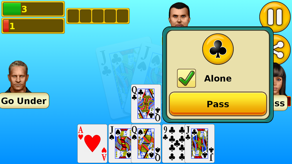 Here's a good free Euchre game for your phone or tablet, Android or Mac. Has a good game interface and lots of options to customize the game play and skill level to suit your need.